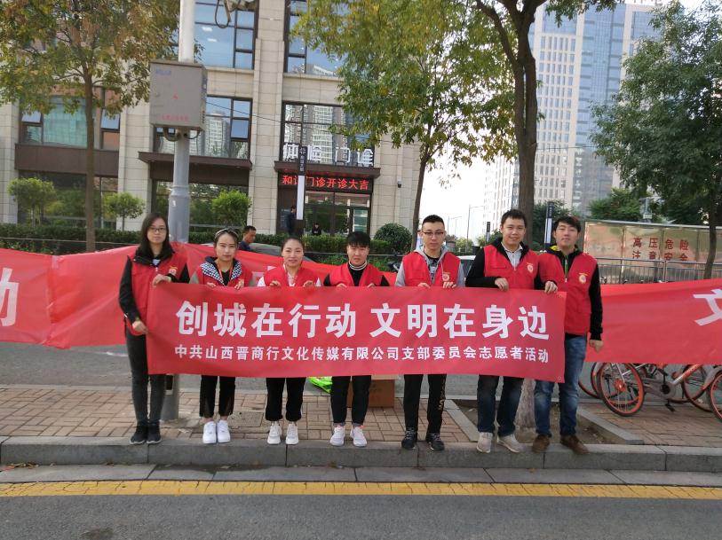 9月28日,晉商行黨支部黨員代表,在學府園區組織下,來到晉陽街南二巷口,開展“創城在行動,文明在身邊”志愿者活動。